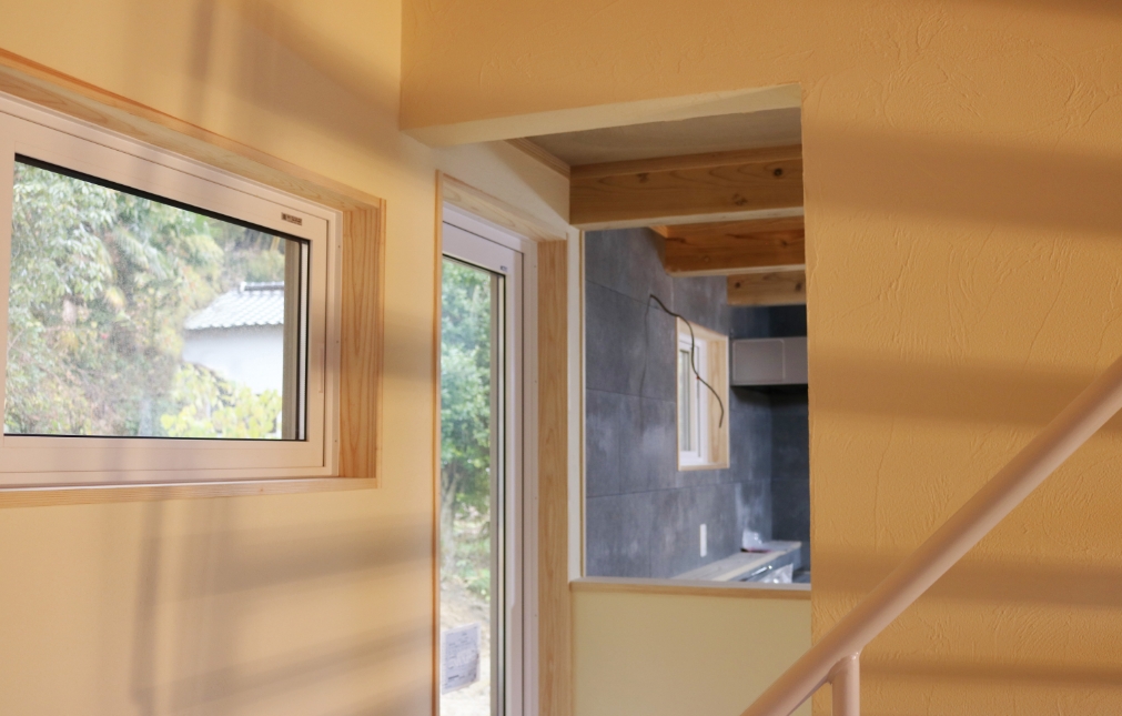 木製サッシや造作のキッチンなど、無垢の素材感を生活の中心部に積極的に取り入れ、これからの家族の成長と共に歩む
